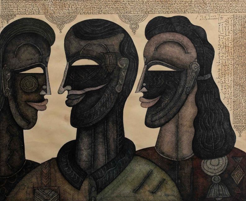 Sundar Raju draws profound inspiration from the diverse folk art traditions of India. His unique style is characterized by human forms reminiscent of leather puppets and wooden dolls. The shapes and colours in his artworks convey the innocence and naiveté of village life, capturing the essence of rural India with a distinctive and expressive visual language.