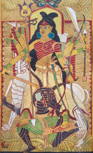 In this work depicting goddess Durga, one sees echoes of pata iconography.