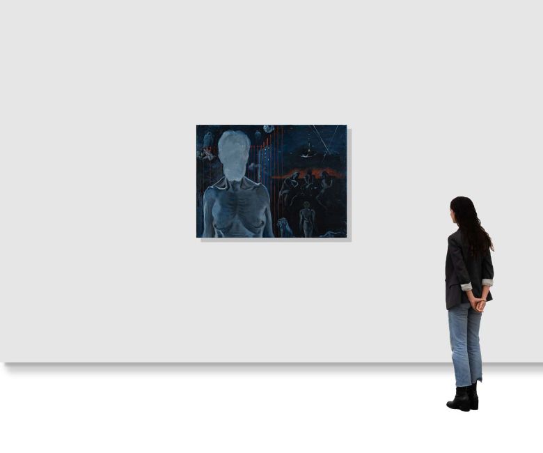 B.C. Sanyal (1901 - 2003)Oil on Canvas30 x 40 inchesSigned and Dated Lower CentreYear - 1993Bhabesh Chandra Sanyal (born in Dibrugarh Assam) was a pioneering painter sculptor and educator who introduced Modernism to India. He contributed to key institutions including the Lalit Kala Akademi and Delhi Silpi Chakra. Sanyal studied at Serampore College and the Government College of Art and Craft Kolkata where he developed his skills in painting sculpture and clay modelling. He briefly attended the Sir JJ School of Art Mumbai for stone carving under Master Khimji. Sanyal's work spanned oil and watercolour paintings as well as bronze terracotta and cement sculptures. Influenced by Post-Impressionism and the Bengal School his paintings often depicted rural landscapes and the struggles of marginalized communities. This artwork reflects a shift in his palette from bright colors to blues and browns post-Partition.For further information on the artist, click here.