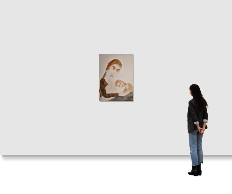 Lajmi often returned to the recurring motif of the mother and child — a subject drawn from life as much as memory.